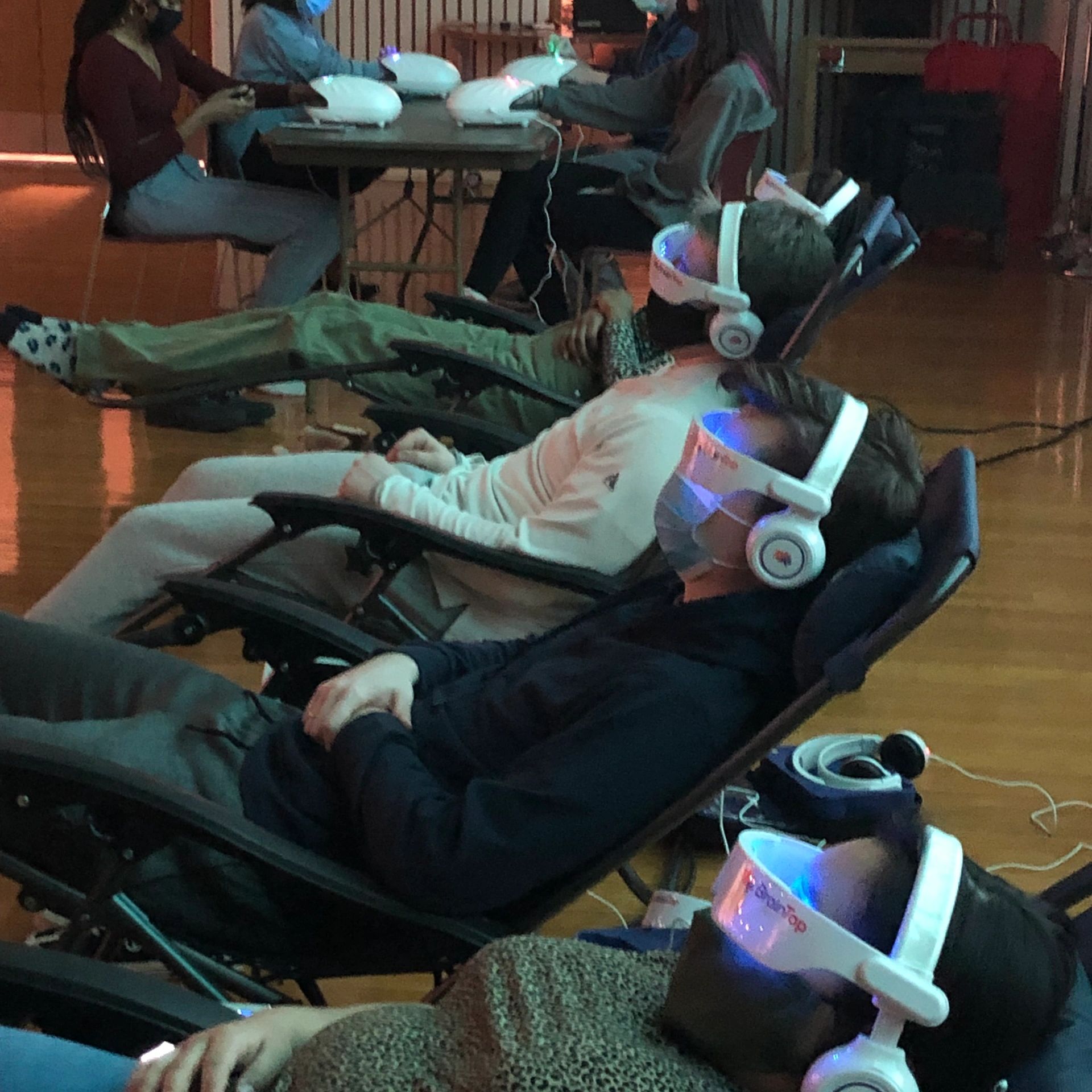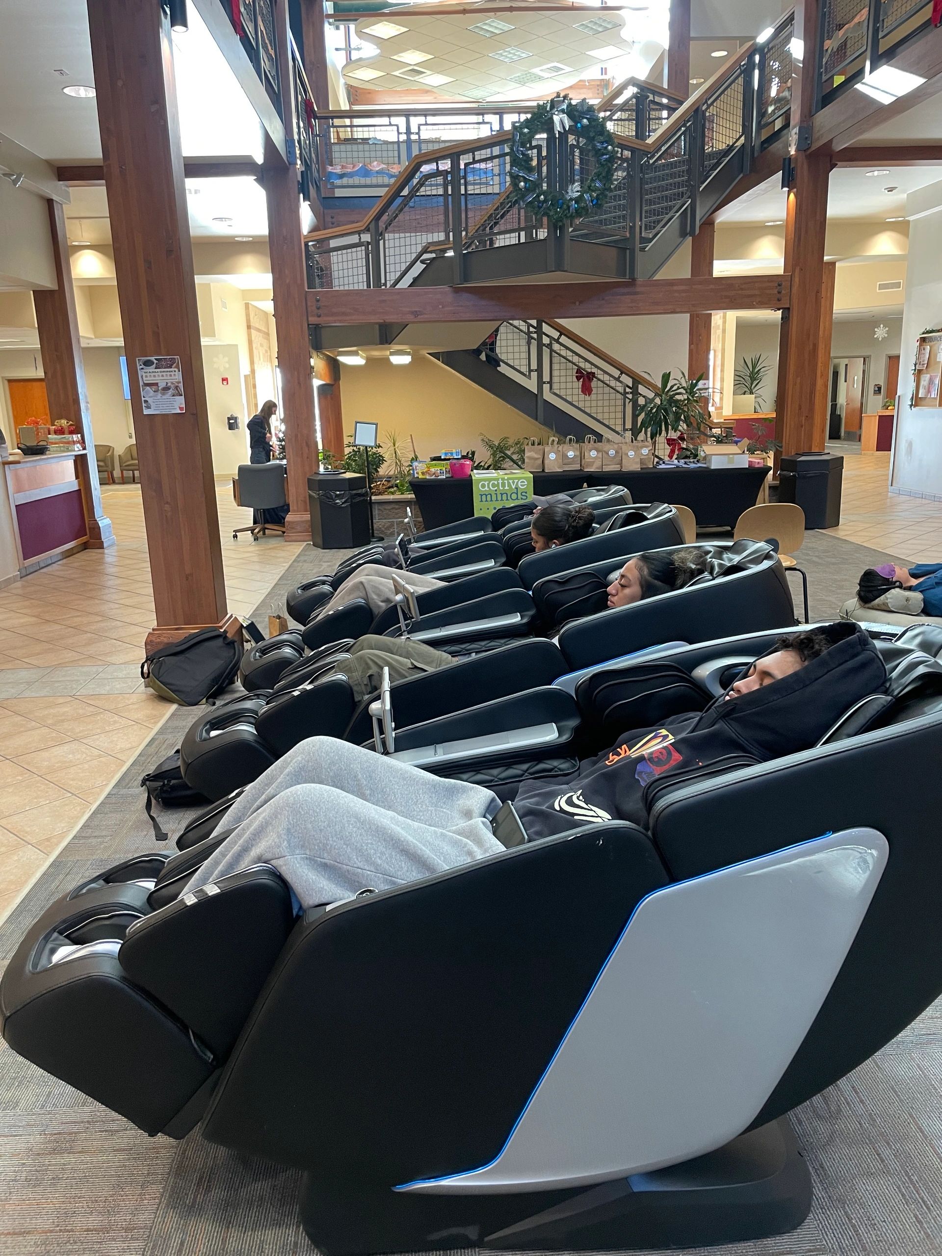 “We bring the spa to you—our Zen Zone relaxation program creates a calming retreat where students can unwind, recharge, and restore balance. With massage chairs, chi machines, an oxygen bar, essential oils, and soothing hand massagers, up to 18 participants can experience complete relaxation at once. We provide the perfect environment to melt away stress and promote well-being.”